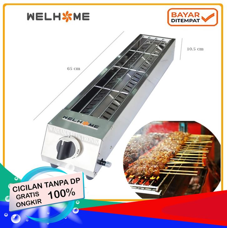 GROSIR/CICILAN WELHOME Kompor Gas Griller panggangan / bakaran sosis / ayam /sate /ikan 65 cm plat stainless paket regul