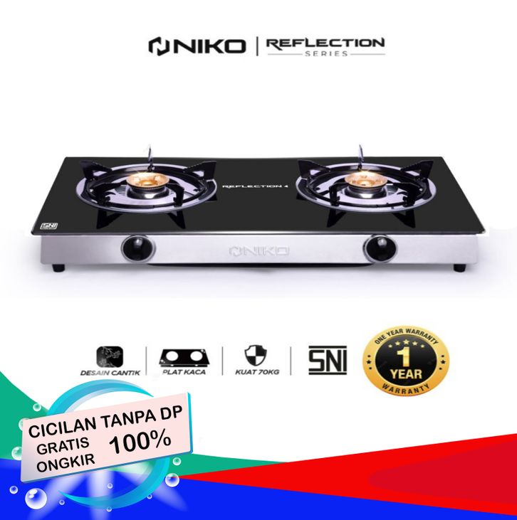 GROSIR/CICILAN KOMPOR GAS 2 TUNGKU NIKO REFLECTION 4 KOMPOR KACA PLAT TEMPERED GLASS 7MM