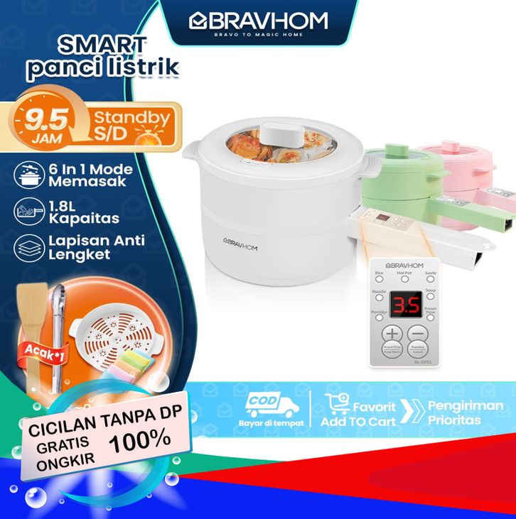 BRAVHOM Panci Listrik Kukusan Serbaguna 1.8L Anti Lengket 6in1 Perlindungan Terlalu Panas BL-EP01