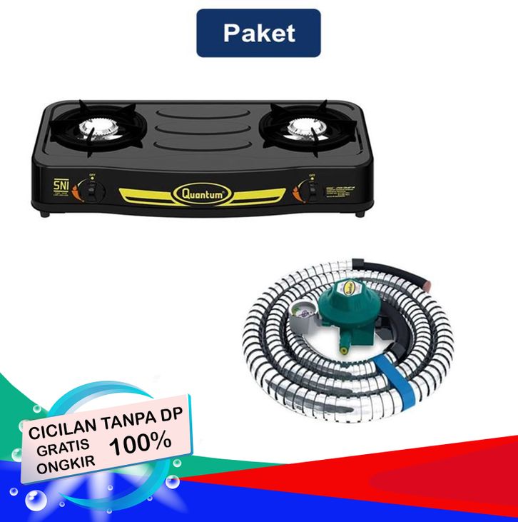 GROSIR/CICILAN Quantum Kompor Gas 2 Tungku 74 cm (QGC-201 DMP B) + Selang & Regulator Gas (QRL032)
