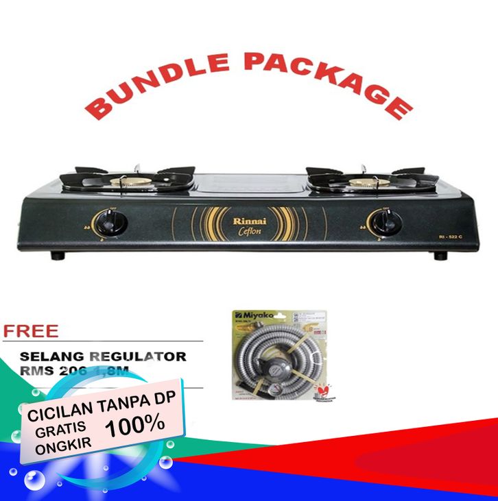 GROSIR/CICILAN innai Paket Bundling Kompor Gas 2 Tungku RI 522C + Selang Regulator Gas RMS 206M