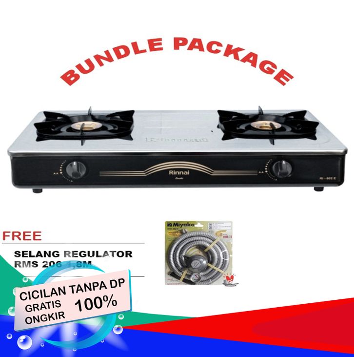 GROSIR/CICILAN Rinnai Paket Bundling Kompor Gas 2 Tungku Rinnai RI 602 E + Selang Regulator Gas RMS 206M