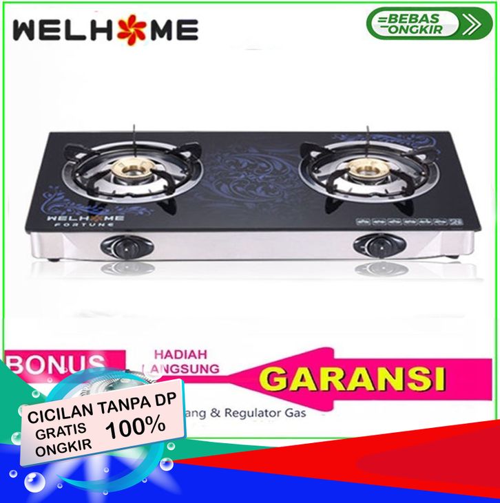 GROSIR/CICILAN WELHOME KOMPOR GAS 2 TUNGKU TEMPERED GLASS FORTUNE-KOMPOR ELEGENT