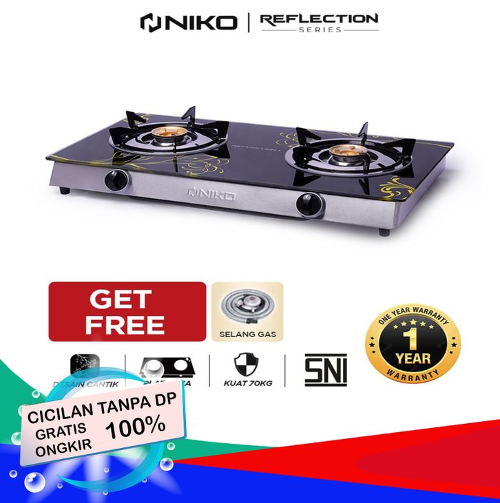 GROSIR/CICILAN KOMPOR GAS 2 TUNGKU KACA - NIKO REFLECTION [BUNDLING] L GARANSI RESMI