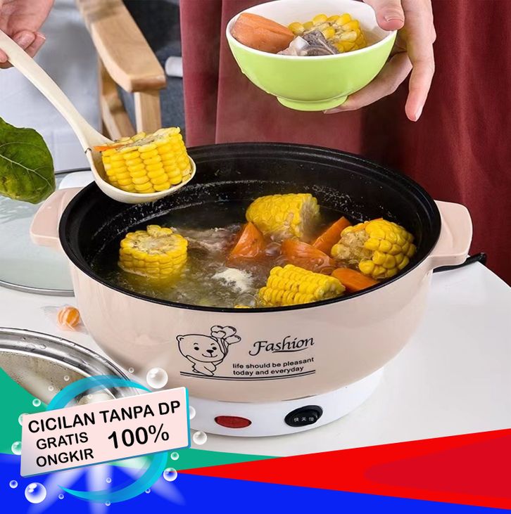 GROSIR/CICILANPanci Listrik Multifungsi Free kukusan / Steamer Stainless Lapis Keramik Teflon cooking pot