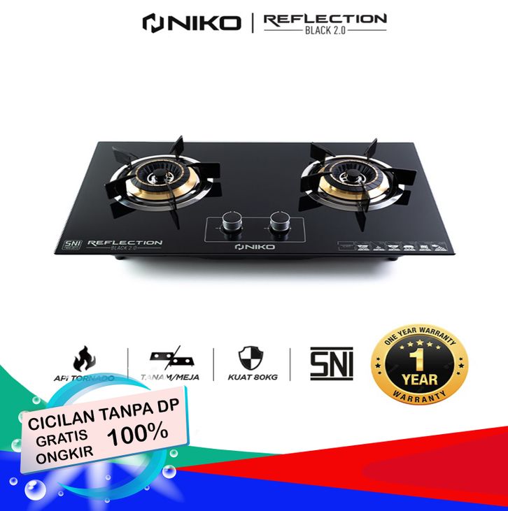 GROSIR/CICILAN KOMPOR GAS TANAM 2 TUNGKU KACA - NIKO REFLECTION BLACK 2.0 L GARANSI RESMI