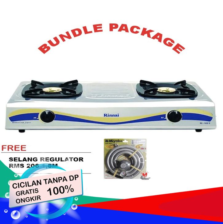 GLOSIR/CICILAN Rinnai Paket Bundling Kompor Gas 2 Tungku RI 522 E + Selang Regulator Gas RMS 206M