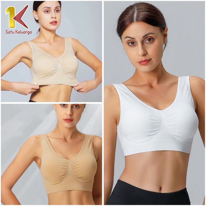 Sport Bra Wanita Vneck Tanpa Kawat Bralette Pakaian Dalam Wanita Olahraga Gym Fitness Senam Zumba BH Polos 1K P344