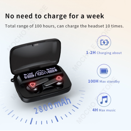 Headset Bluetooth Full Bass 3500mAh TWS Earphone Stereo