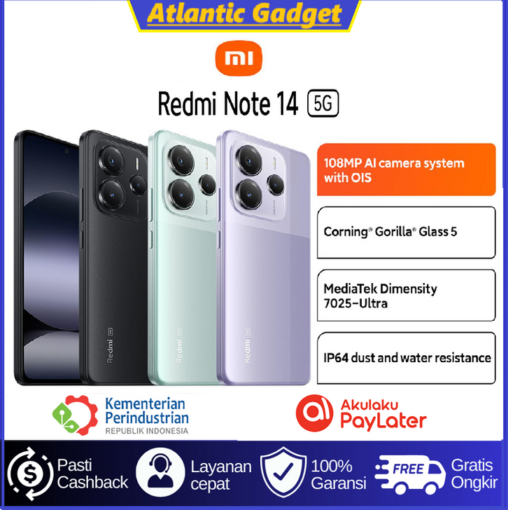 Xiaomi Redmi Note 14 5G RAM 8/256GB & 12/512GB | MediaTek Dimensity 7025 Ultra | Layar 6.67" AMOLED 120Hz | Kamera 108MP