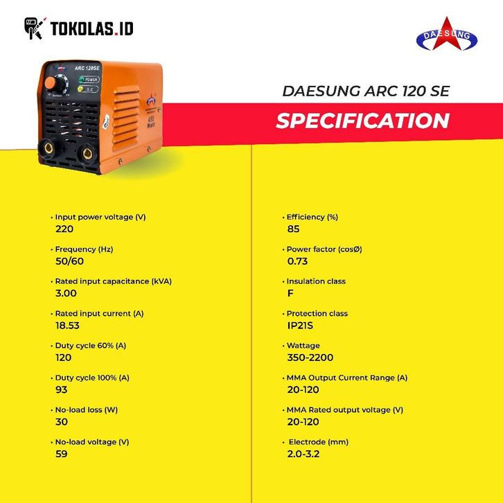 MESIN LAS LISTRIK 450 WATT 120A MESIN LAS DAESUNG ARC 120 SE TRAVO LAS BESI STAINLESS STICK INVERTER WELDING MACHINE