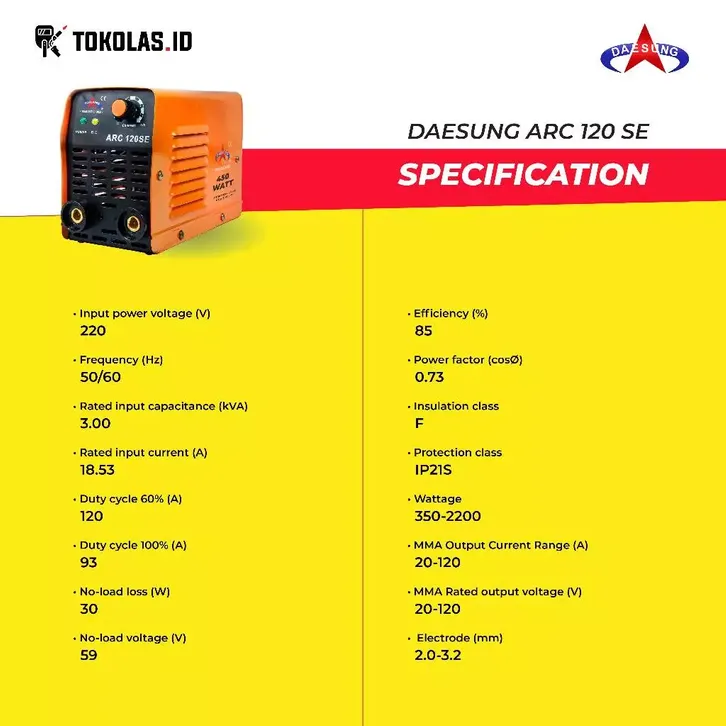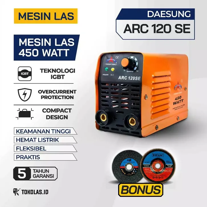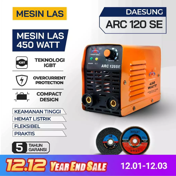 MESIN LAS DAESUNG ARC 120 SE MESIN LAS 450 WATT TRAVO LAS BESI STAINLESS STICK INVERTER WELDING MACHINE IGBT KOREA