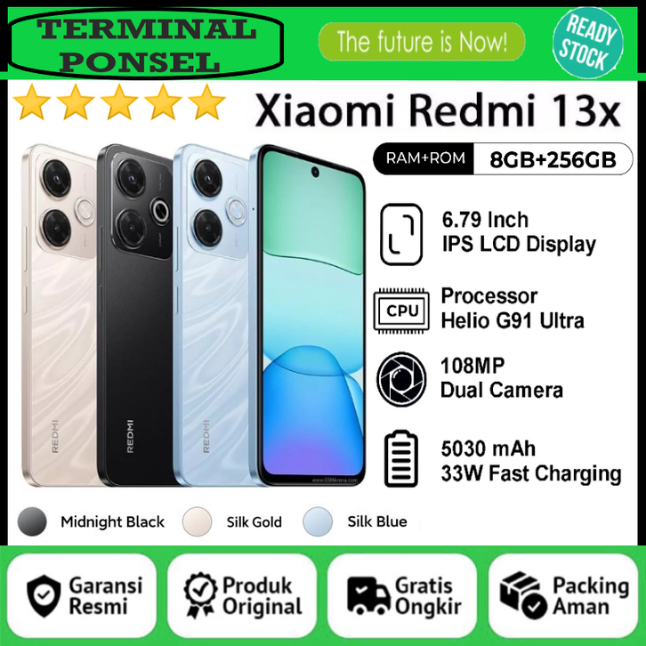 Xiaomi Redmi 13X 8/128GB | 8/256GB NFC Helio G91-Ultra, Camera 108MP, 5030mAh | REDMI 13 8/256GB GARANSI RESMI