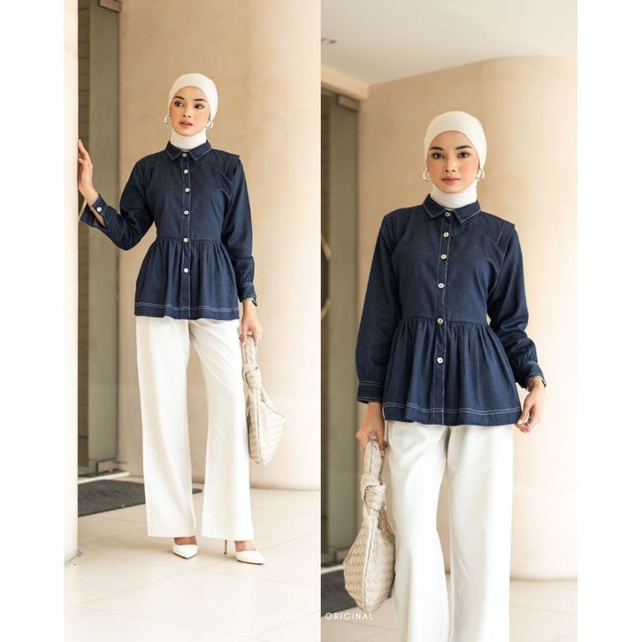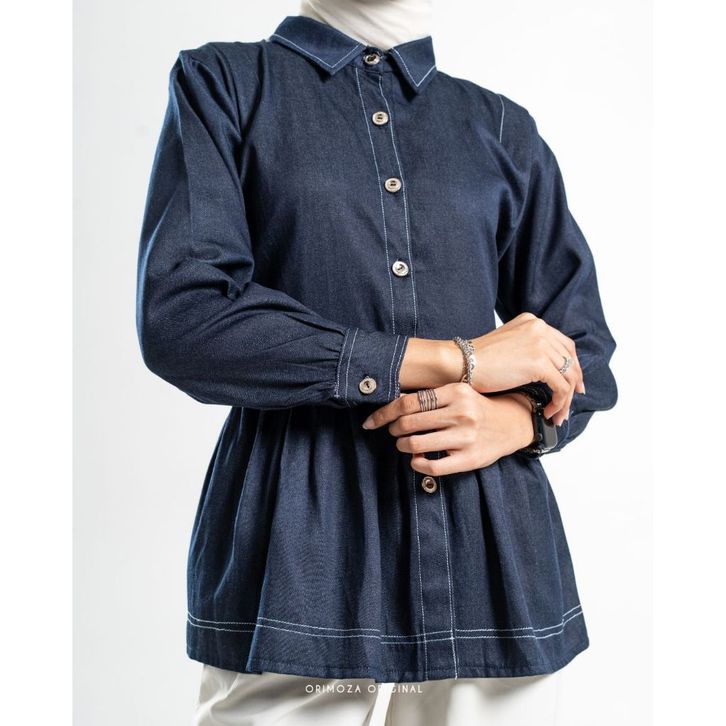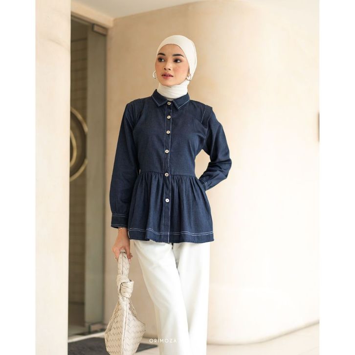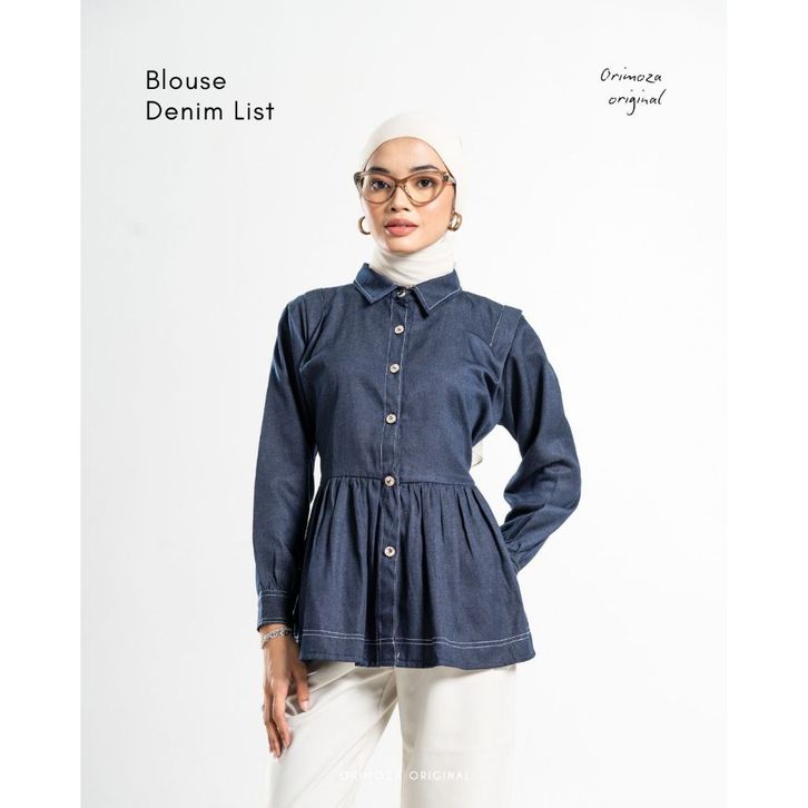 KAMEJA BLOUSE DENIM ORIMOZA SHANNA LIST PREMIUM TERBARU ORIGINAL TERLARIS