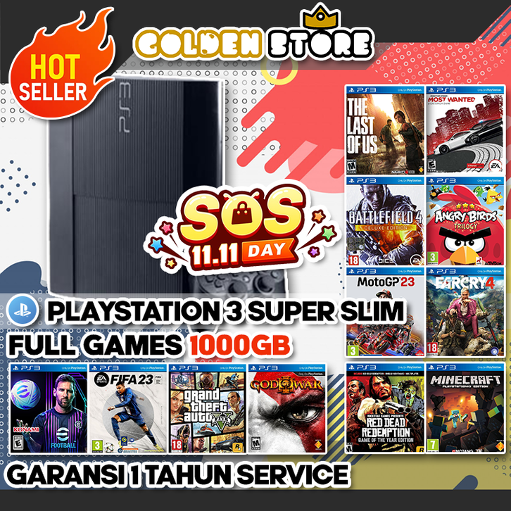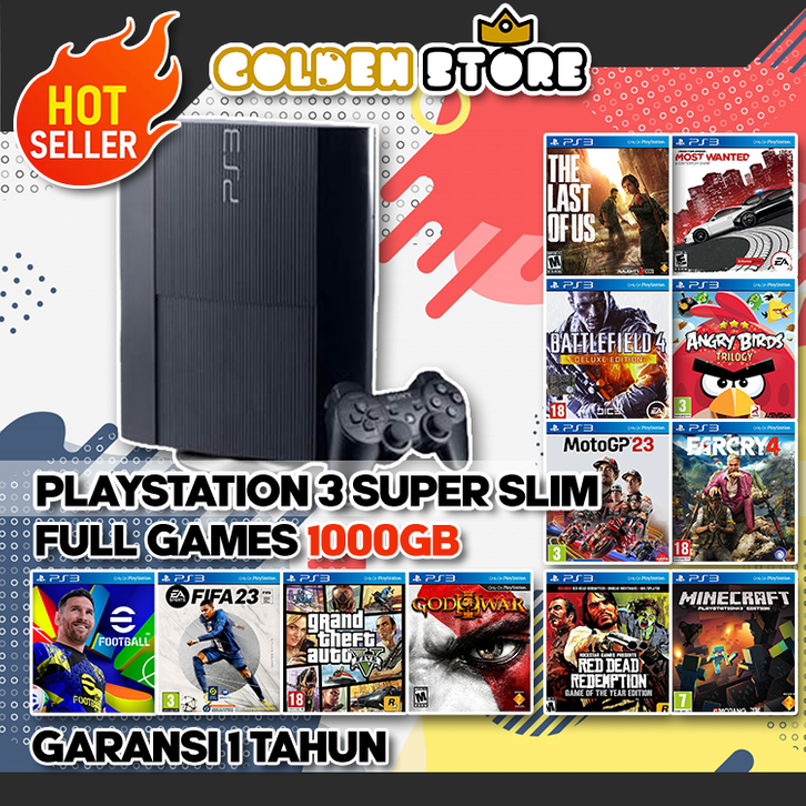 LANGSUNG KIRIM ! PS3 PLAYSTATION 3 SUPERSLIM 1000GB + 2 Stik wireless (FULL GAME UPDATE TERBARU)