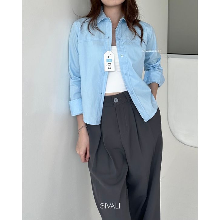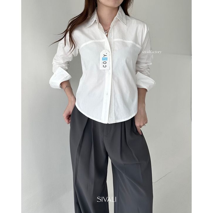SIVALI Haven Fitted Shirt Kemeja Wanita Slim Effect Lengan Panjang Casual Kerja Atasan Wanita Polos 1920