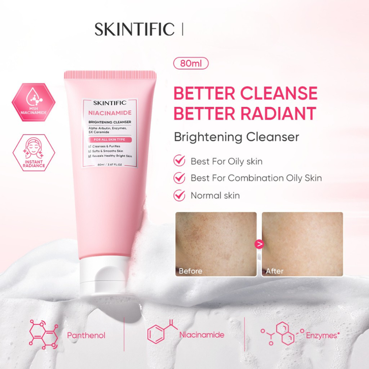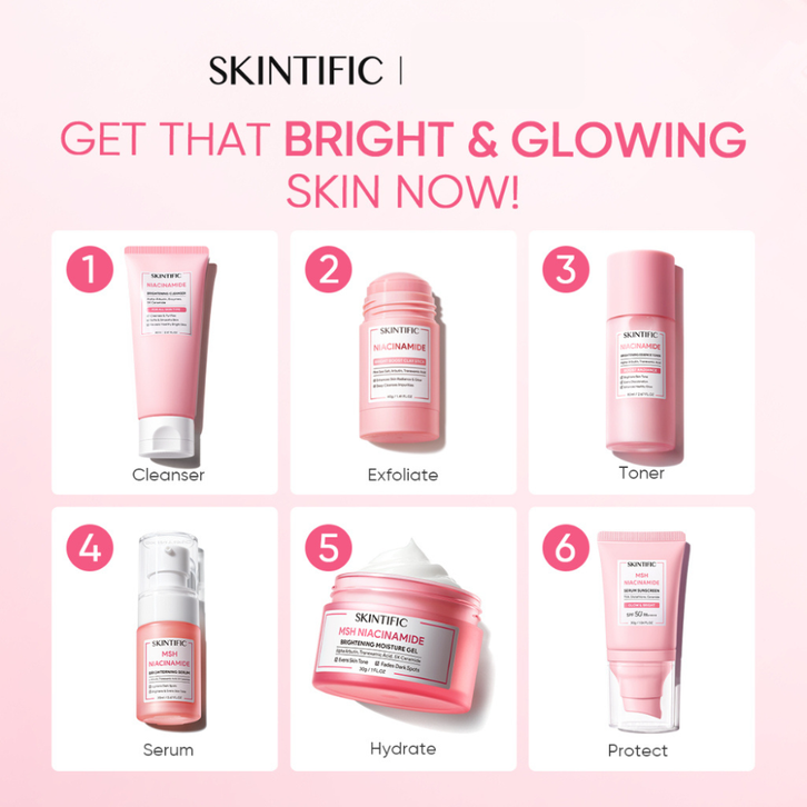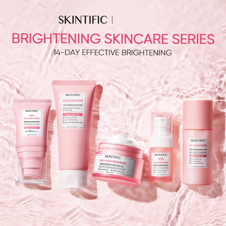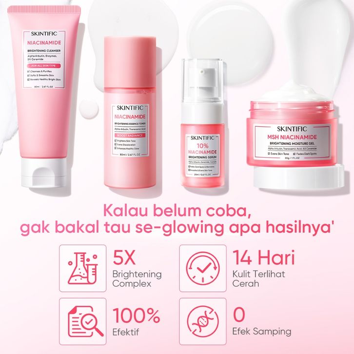 SKINTIFIC SKINCARE NIACINAMIDE BRIGHTENING SERIES 5IN1 SET SERUM MOISTURIZER GEL TONER CLEANSER CLAY STICK FACIAL WASH