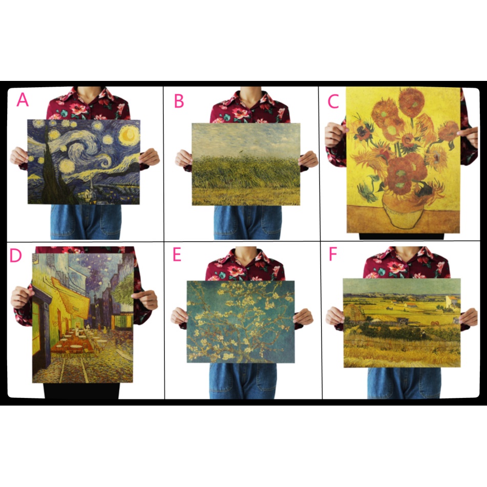 LUKISAN POSTER DESAIN VAN GOGH NOSTALGIA BAHAN KERTAS KRAFT UNTUK DEKORASI RUMAH