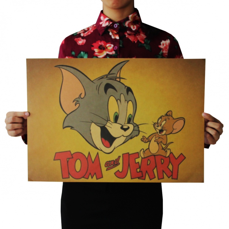 POSTER LUKISAN KUCING DAN TIKUS NOSTALGIA BAHAN KERTAS KRAFT UNTUK DEKORASI RUMAH