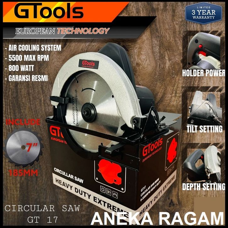 MESIN GERGAJI LISTRIK GTOOLS CIRCULAR SAW 7INCHI POTONG KAYU TRIPLEK PAPAN APR JLD DEKWE