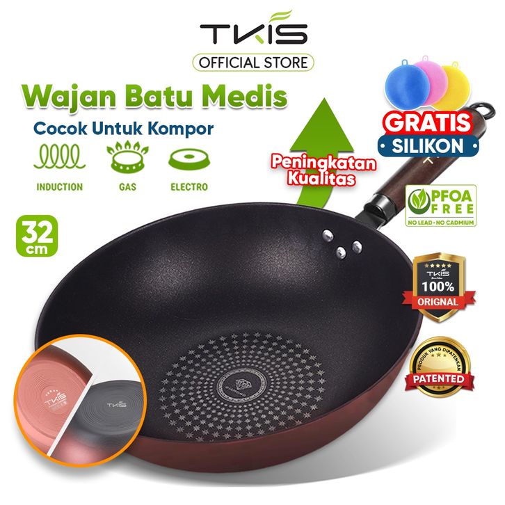 Tkis Wajan Penggorengan Anti Lengket Batu Medis Ukuran 32 Cm Tk-826 Wajan Penggorengan Paling Laris
