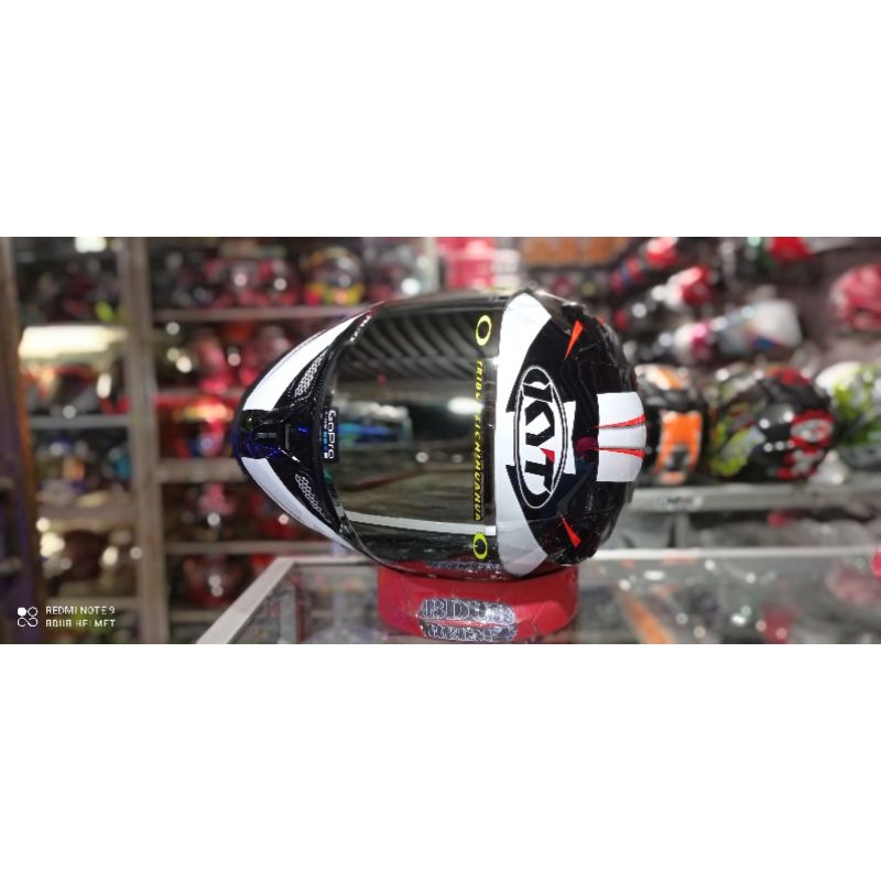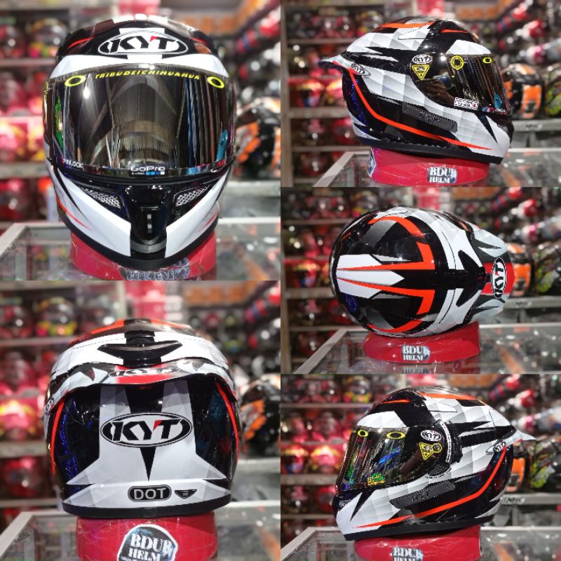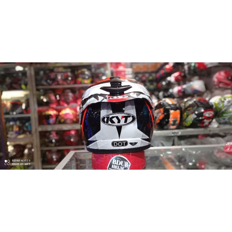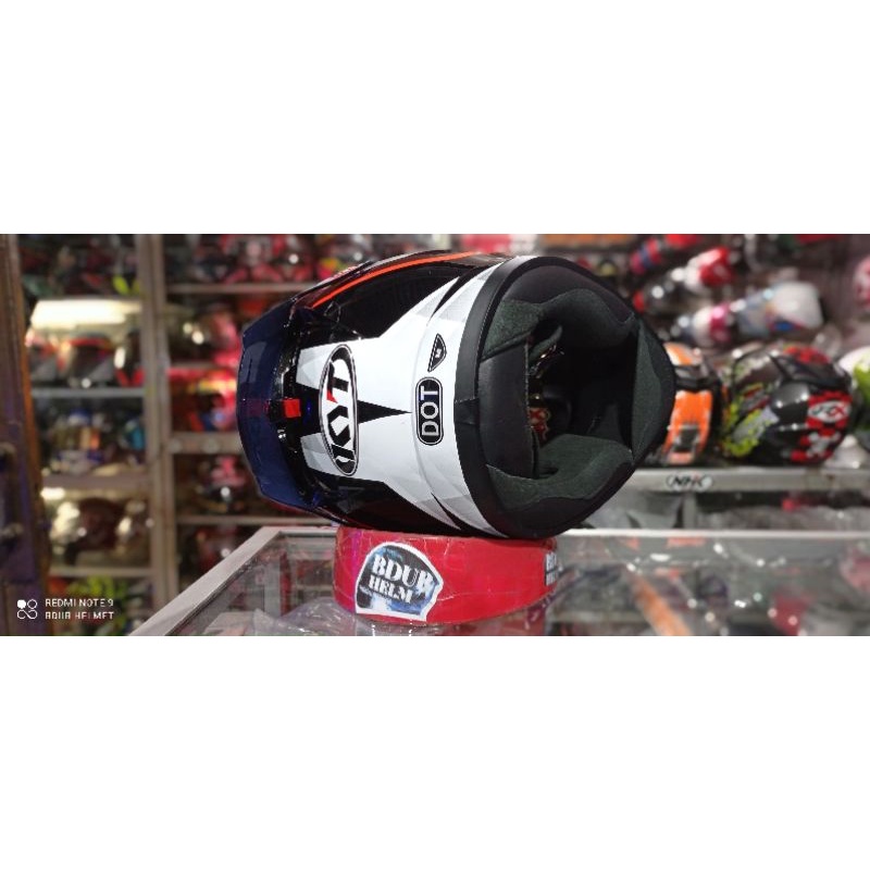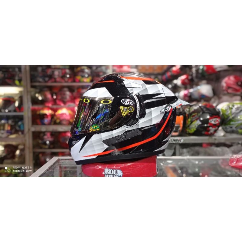 HELM KYT K2 RIDER DIAMND WHITE PAKET GANTENG+KACA FLAT IRIDIUM+SPOILER+STIKER FULL KC ORI