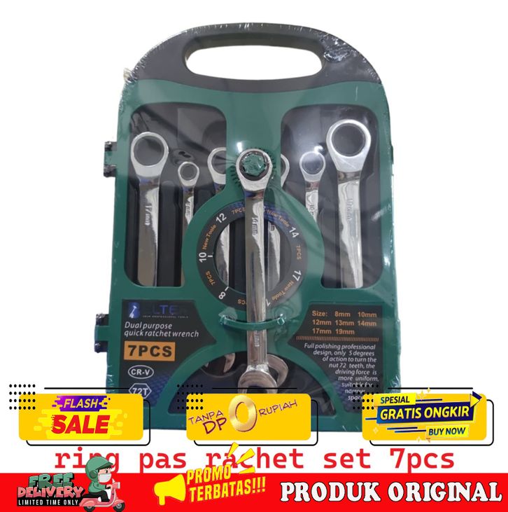 Kunci Ring Pas Rachet Set 7 Pcs / Rachet Tekiro / Open End Wrench 8-19MM