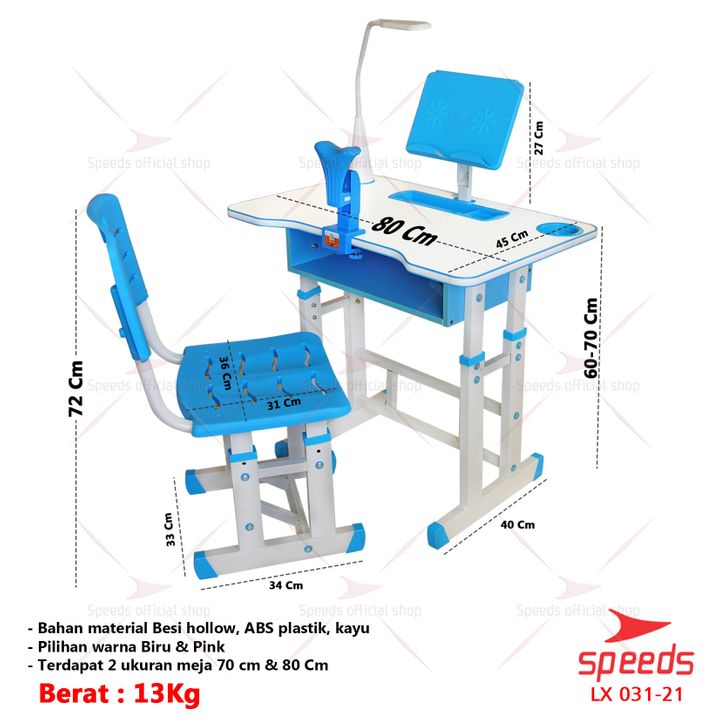 SPEEDS Meja Kursi Belajar Anak UK. 70 & 80cm Meja Kursi Sekolah Set Meja Belajar dan Kursi 031-21-22