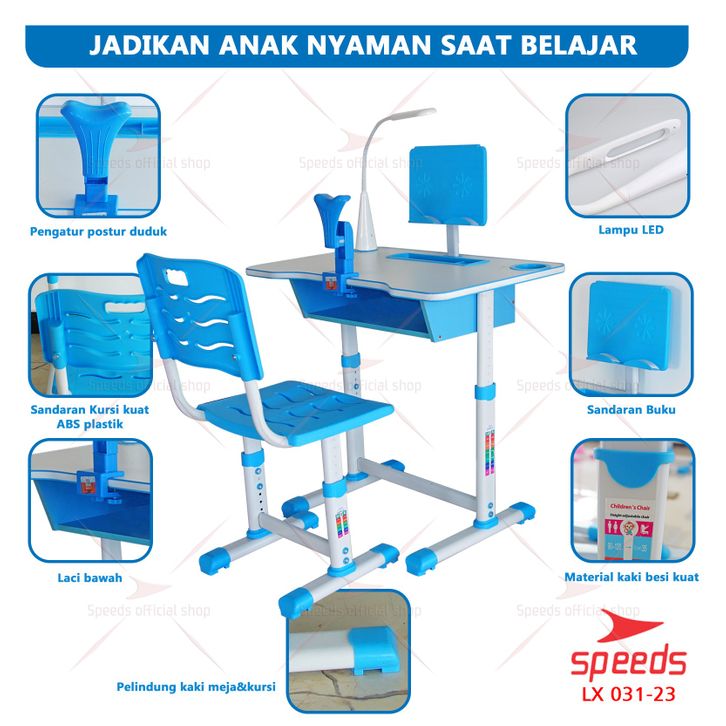 SPEEDS Meja Kursi Belajar Anak UK. 70 dan 80cm Meja Kursi Sekolah Meja Tulis Anak Portable 031-23-24