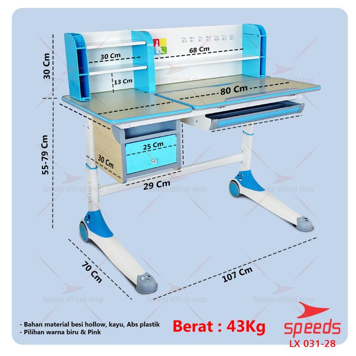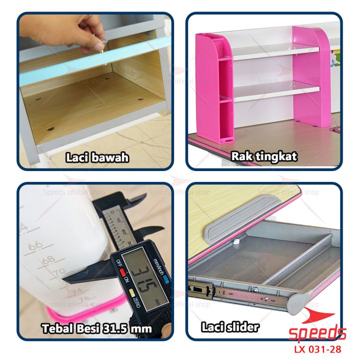 SPEEDS Meja Belajar Anak ukuran 120cm Meja Sekolah Meja Tulis Anak Portable 031-28