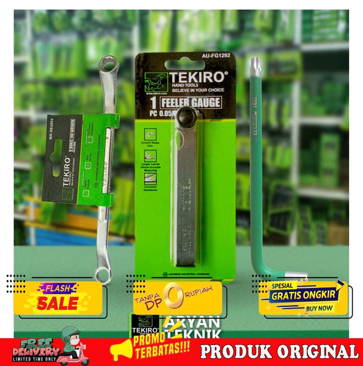 PROMO PAKET ORI feeler gauge tekiro kunci stel klep 0.05-1.0 mm - Kunci Klep L Sepeda Motor - kunci ring 8x9