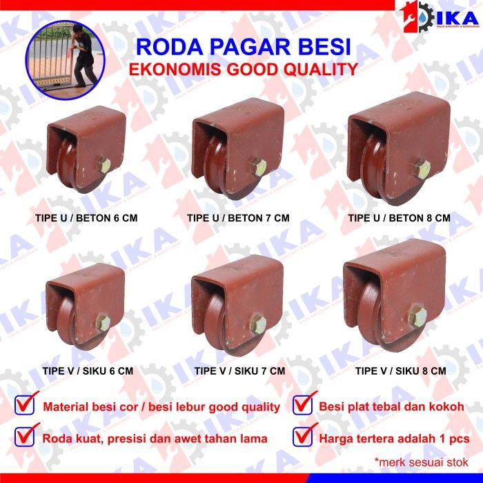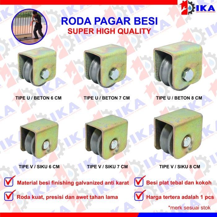 Roda pagar roda bubut besi super as ukuran - Rell Siku + bulat - -