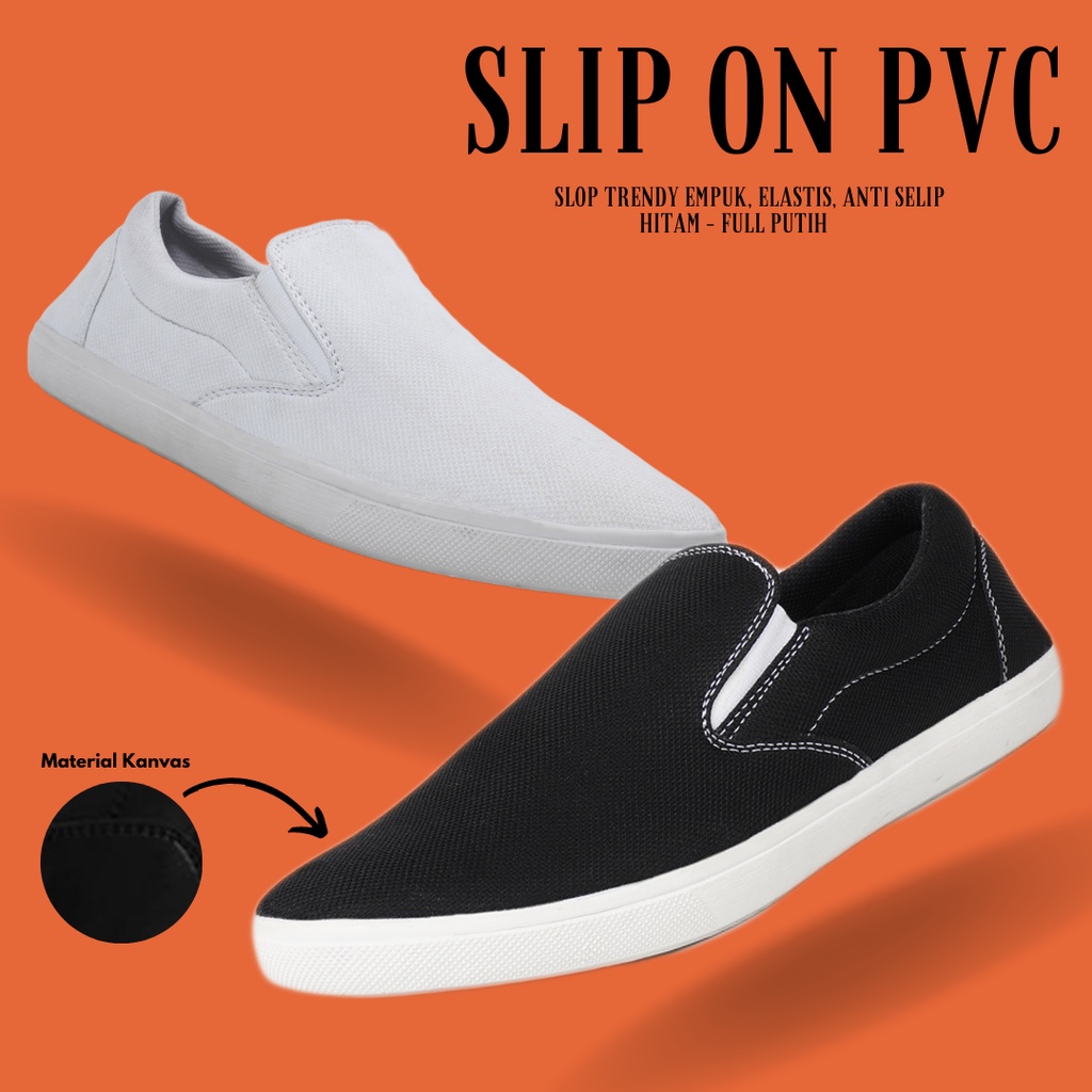 SEPATU SLOP CASUAL SNEAKERS SANTAI SLIP ON PRIA KANVAS PVC MURAH KEKINIAN SEKOLAH