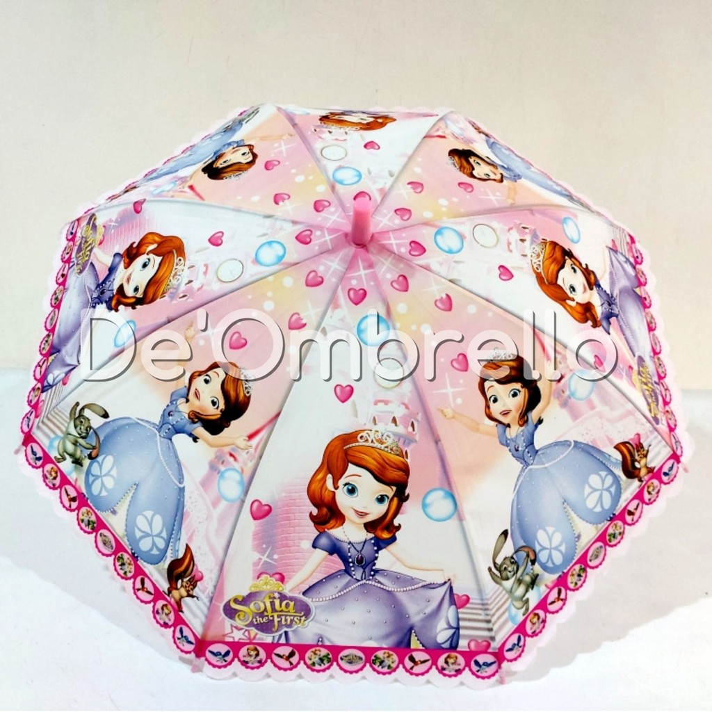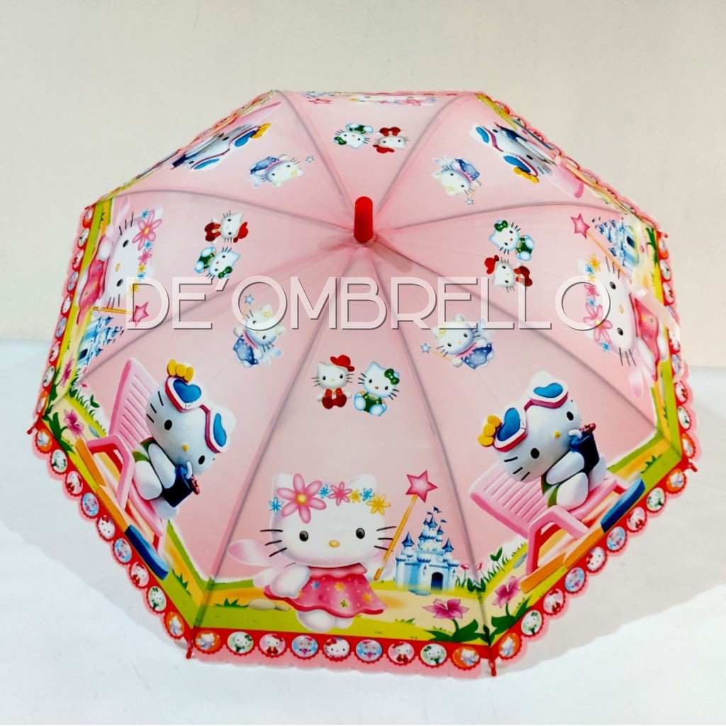 (007B)DE'OMBRELLO PAYUNG PVC ANAK KARAKTER FULL PRINT RENDA PRINTING