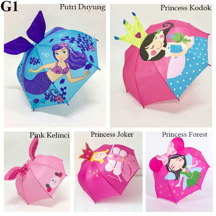 LULUAQUATIC PAYUNG ANAK KUPING JUMBO KARAKTER PRINCESS DAN ANIMAL/ ANAK / TERLARIS