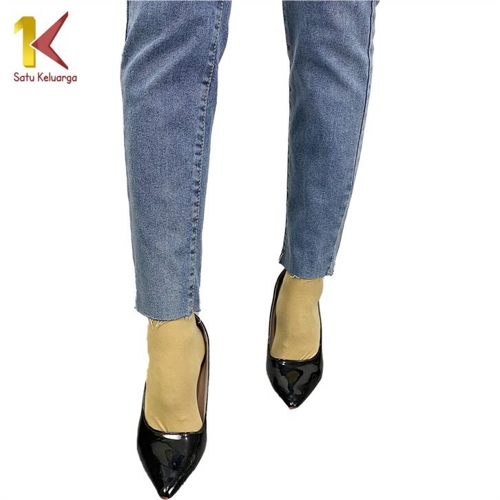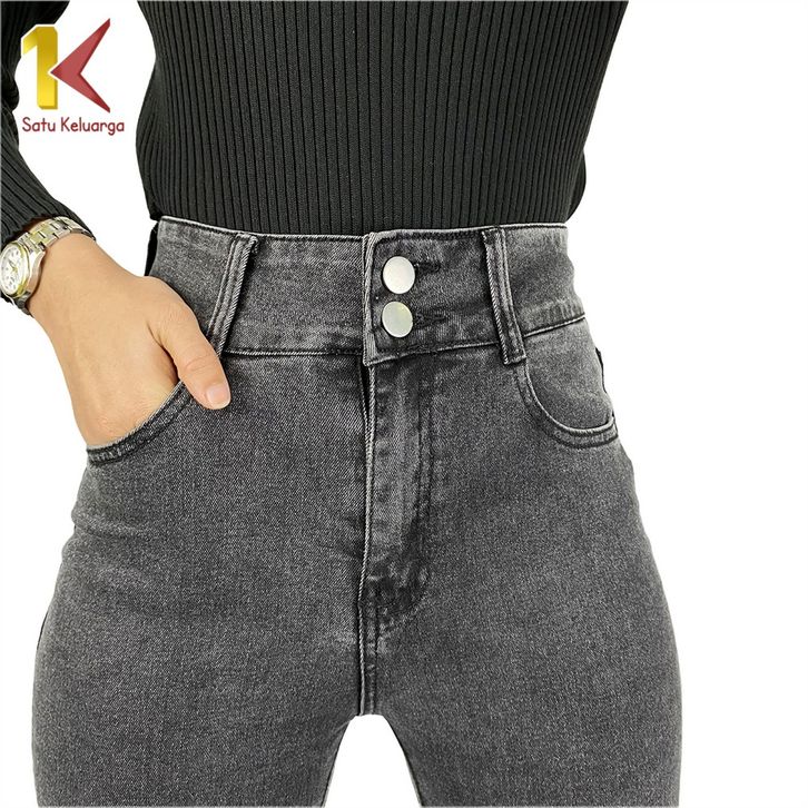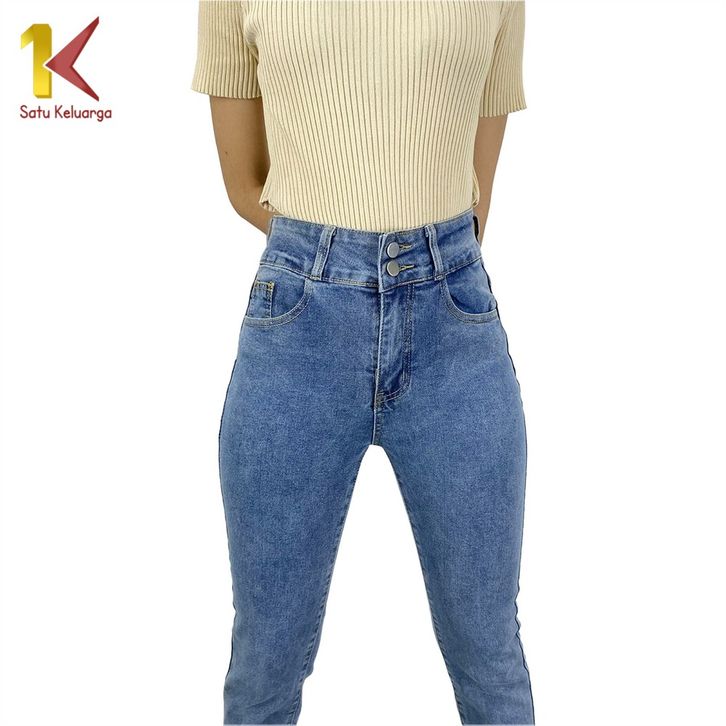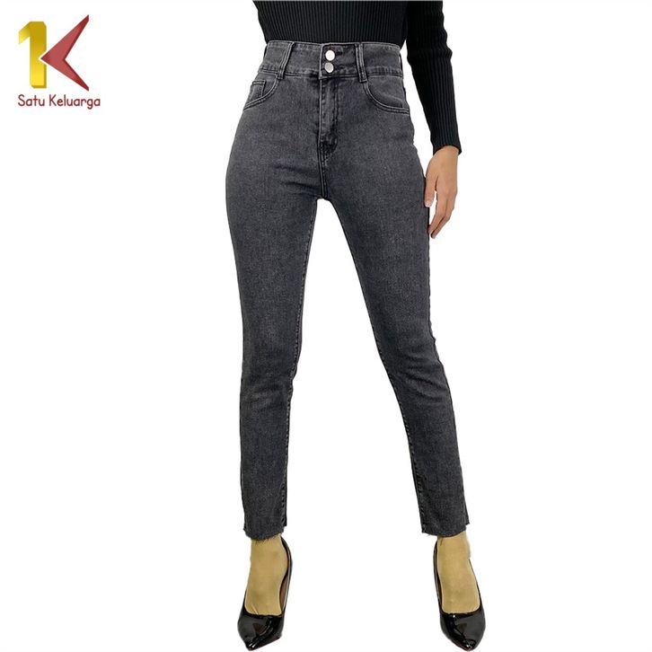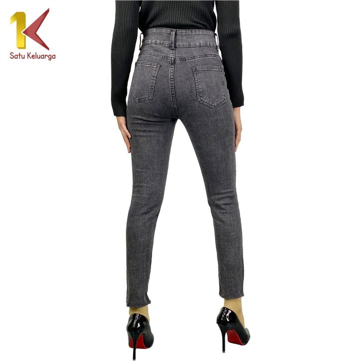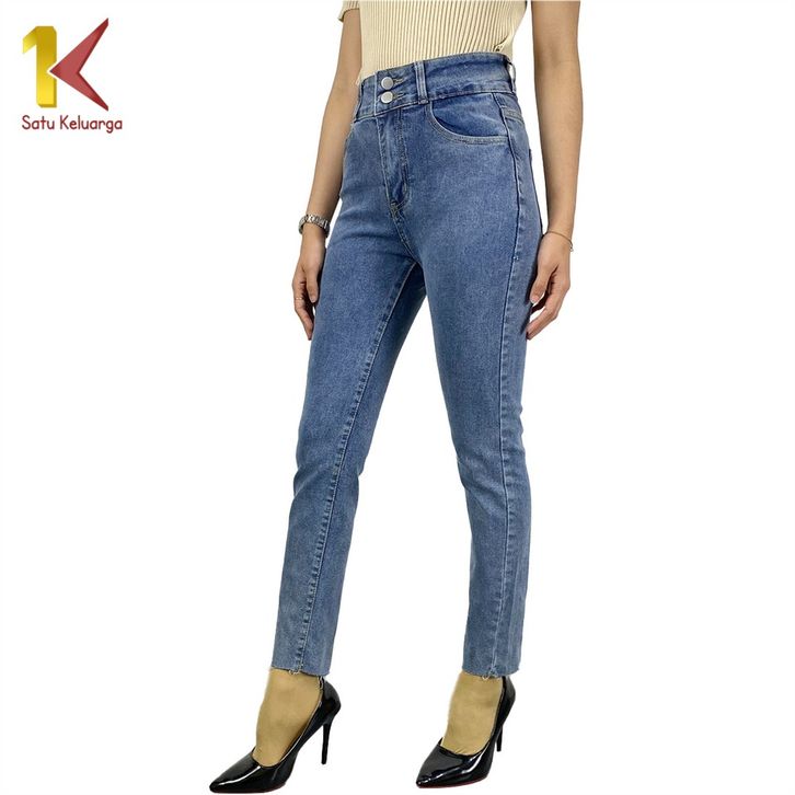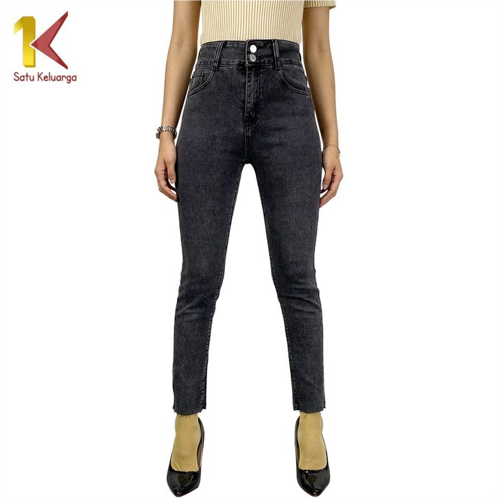 Stretch Skinny High Waist Jeans Unfinished Cut dengan 2 Kancing Celana Jeans Panjang Wanita Kekinian 1K P594
