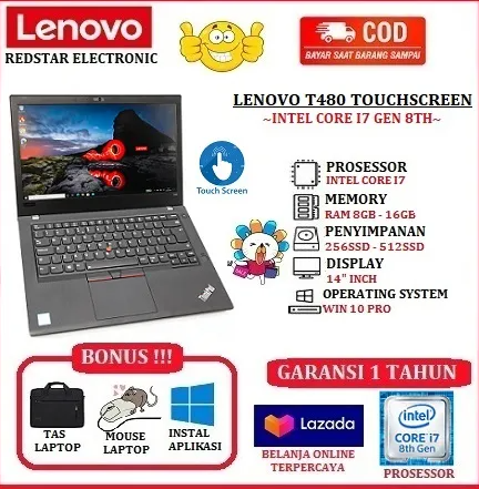 LAPTOP SLIM SPEK TINGGI !! LENOVO THINKPAD T480 I7 GEN 8 TOUCHSCREEN / RAM 16GB SSD 256GB / DAPAT MOUSE/TAS