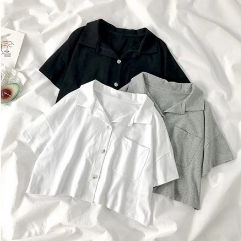 YAMA CROP SHIRT KEMEJA WANITA BEST SELLER | CROP T0P KOREAN STYLE | KEMEJA POLOS TERLARIS
