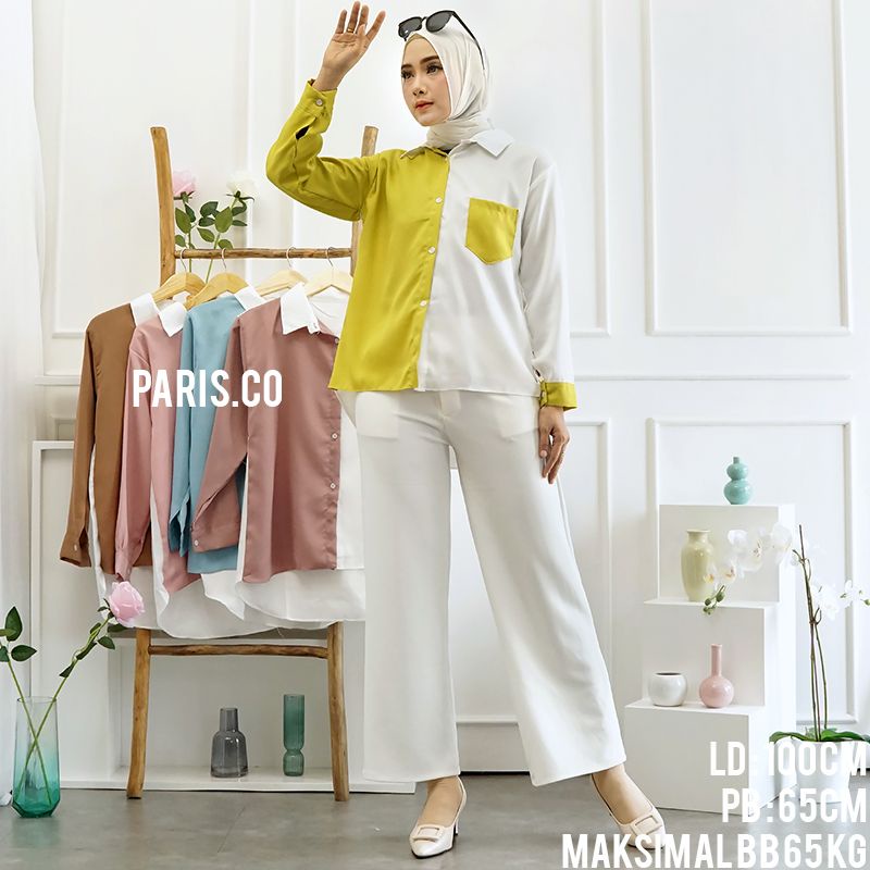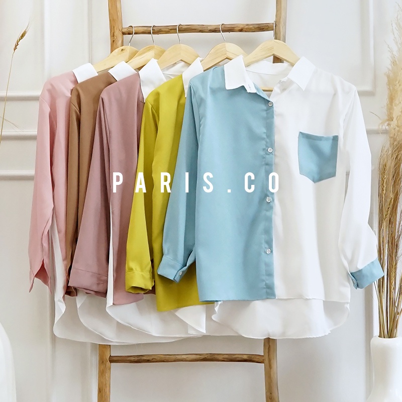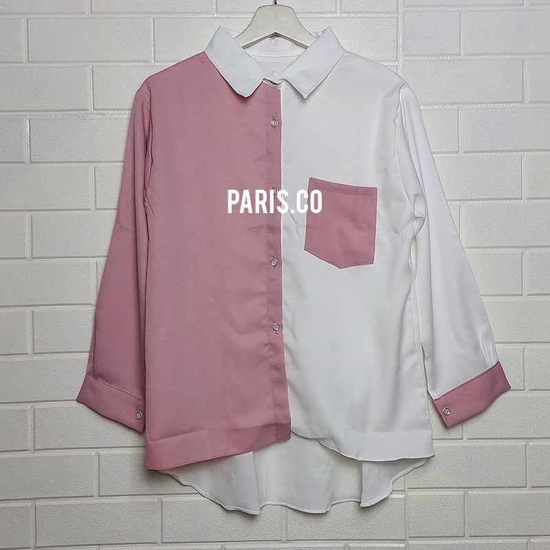 KEMEJA WANITA POLOS BASIC CASUAL KOMBINASI WARNA LENGAN PANJANG KEKINIAN KOREAN STYLE MODEL PINGUIN