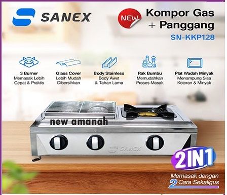 SANEX SN-KKP 128 kompor Gas 2 in 1 Panggangan Sekaligus Ada Kompor 1 Tungku ( sate,sosis, ikan, ayam ) (P57 CM,L43CM,23C