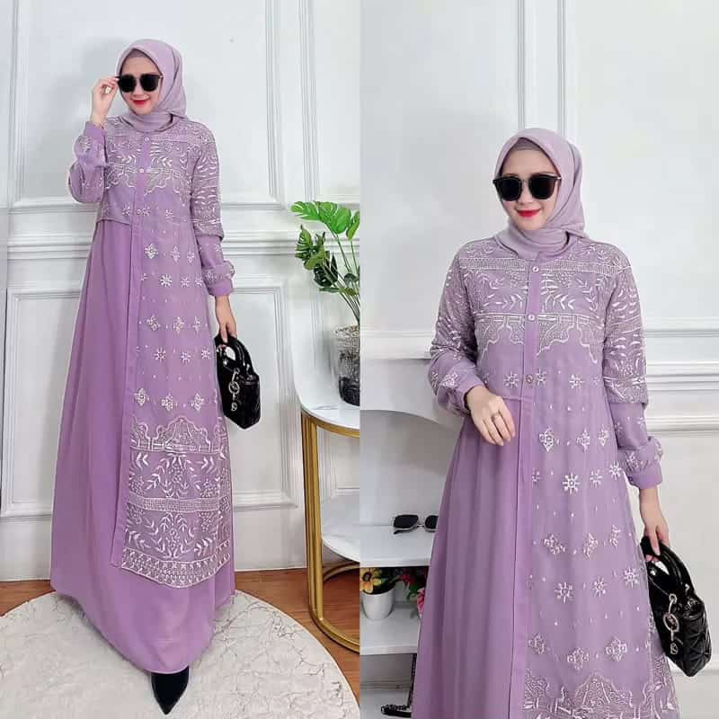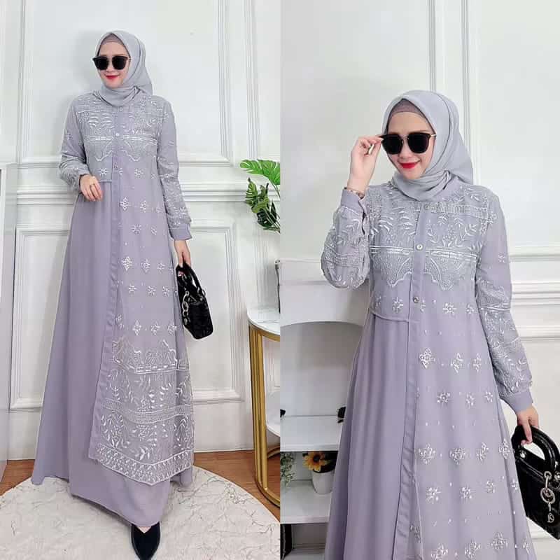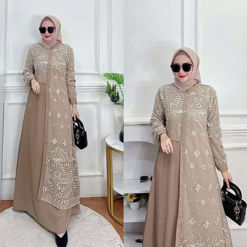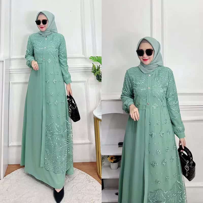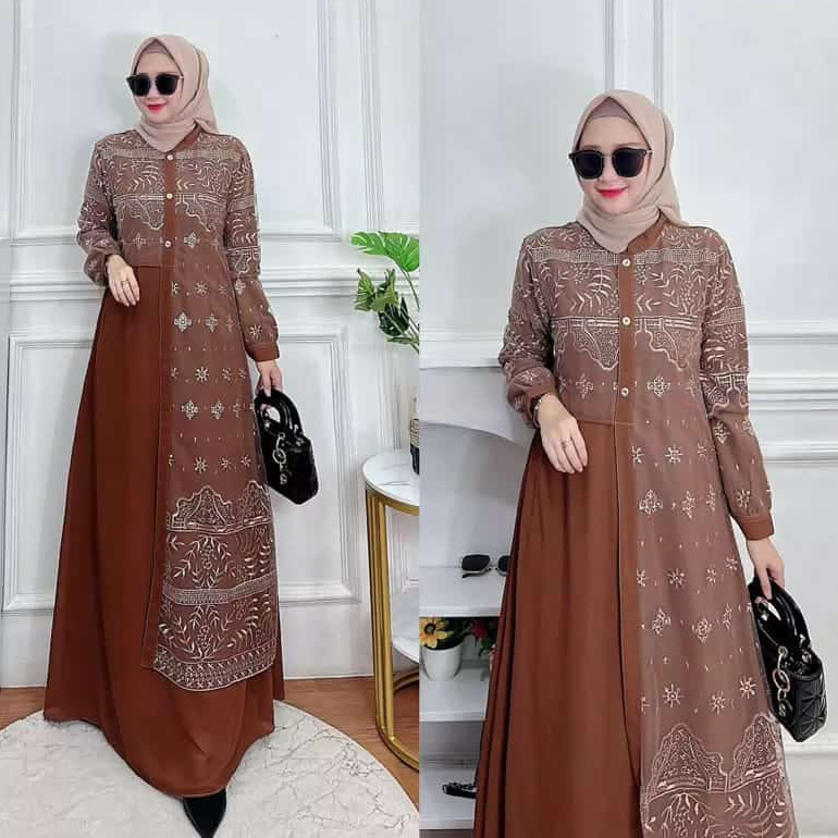 GAMIS WANITA PREMIUM ALLENA MAXY DRESS BROKAT LAYERING GAMIS MODERN CERUTY BABYDOLL PESTA KONDANGAN PREMIUM