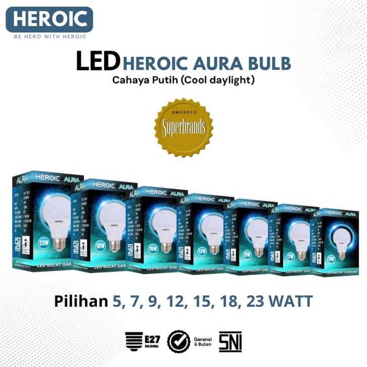 Lampu heroic bohlam led aura bulb cahaya putih hemat energi