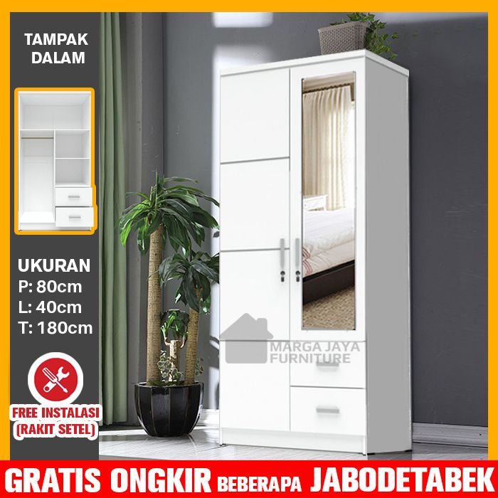 Lemari Pakaian 2 Pintu Putih + Laci Minimalis Baju Termurah Knock Down