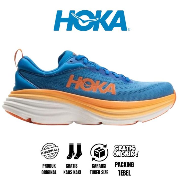 SEPATU HOKA ORIGINAL BONDI 8 MENS ROAD RUNNING SHOES - COASTAL SKY / VIBRANT ORANGE OFFICIAL STORE