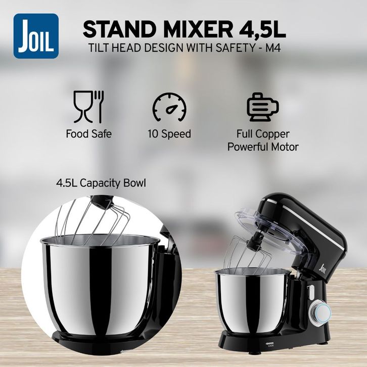 Joil Stand Mixer 4.5 Liter dengan Pulse Mode Mangkuk Stainless Steel dengan 3 Alat Pengaduk M4 / Standing Mixer Advance