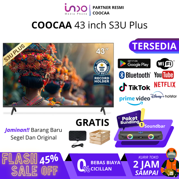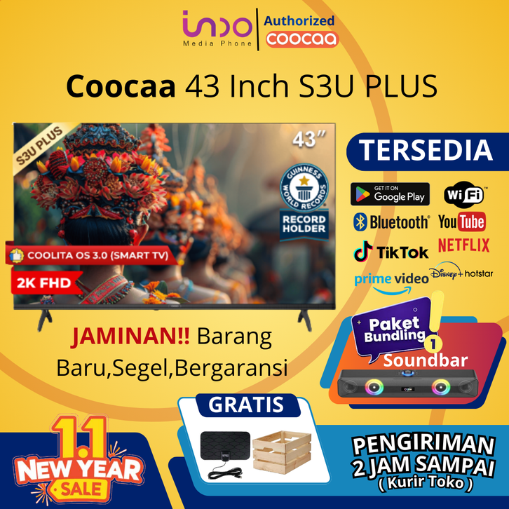 PROMO ♨️ COOCAA TV 43 inch S3U Plus - Coolita 3.0 - Smart TV - 2K LED - HDR 10- Voice Control - Youtube/ Prime Video
