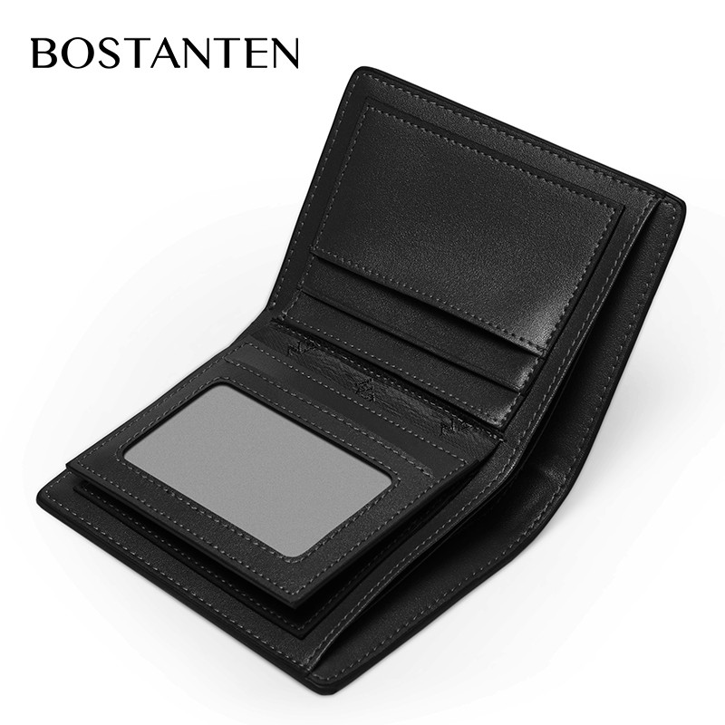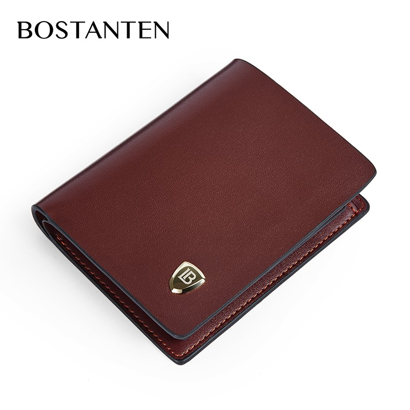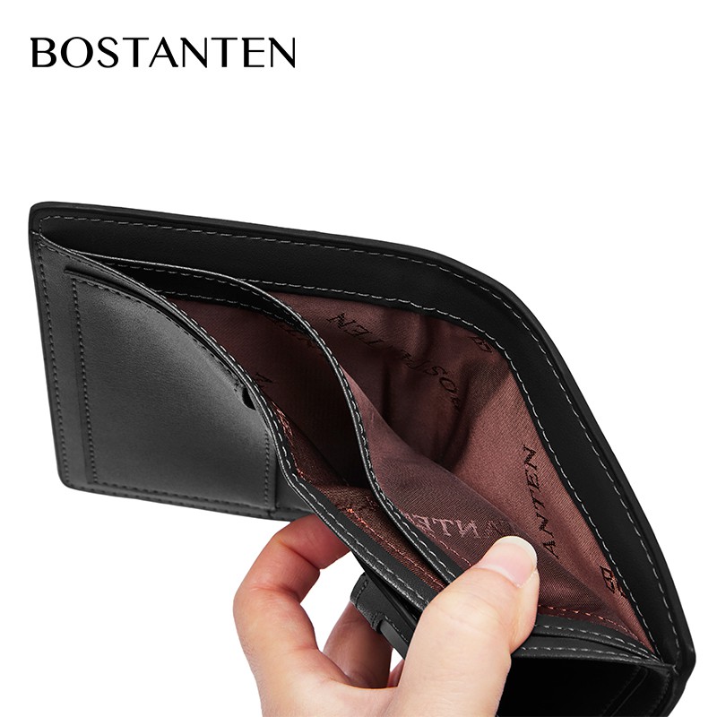 BOSTANTEN Dompet Pria Bahan Kulit Sapi Asli Model Lipat Pendek Hitam/Coklat