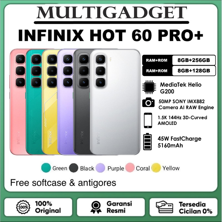 Infinix Hot 60 Pro+ 8/256GB (EXTEND RAM 16GB) NFC - AMOLED - Mediatek Helio G200 - 50MP | infinix hot 60pro plus 8/128gb