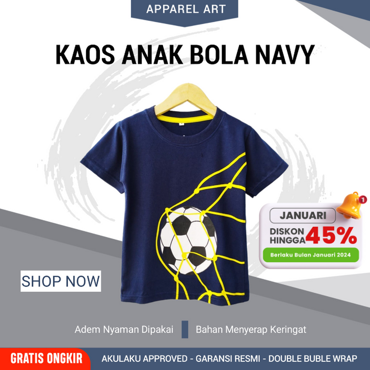 Baju Anak Goal Bola Navy Biru Dongker Atasan Lengan Pendek Baju Kids Cowok Cewek Unisex COtton COmbed 30s