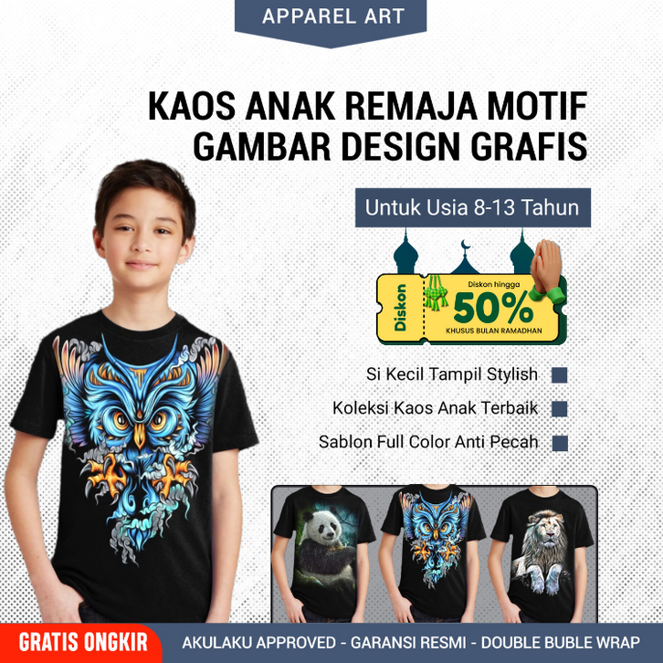 Baju Anak Remaja Tanggung Motif Gambar Macan Vespa Design Grafis Untuk Usia 8 Sampai 13 Tahun Cowok Cewek